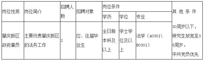 本次招聘肇慶新區(qū)政府雇員2名。